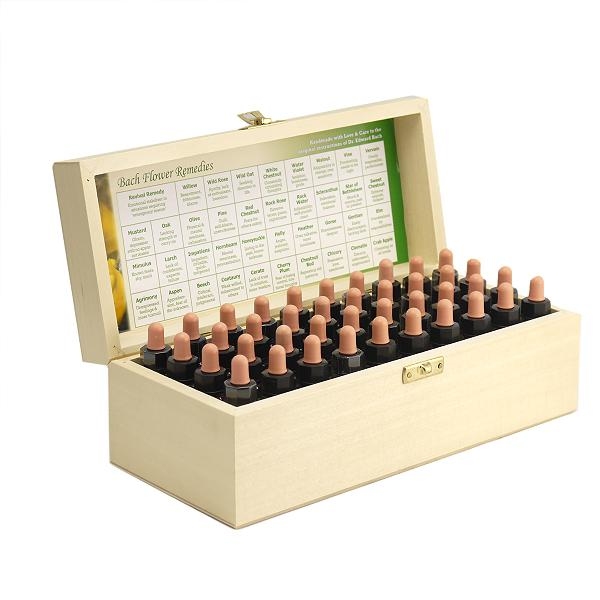 這套Crsytal Herbs巴赫花精40瓶全套優惠組,包含38種單方花精各1瓶,以及急救花精2瓶,用淺木色的英國原裝進口精緻菩提木盒盛裝。每瓶花精的保存期限長達10年,是長期居家情緒護理的必備品。